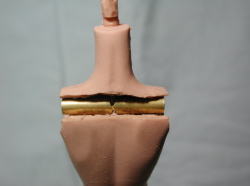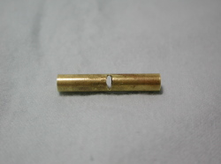 | 30mm幅に切った真鍮パイプです。 パイプの中心に切り込みを入れます。 これは首のワイヤーを通す為のモノです。 現物合わせで工作したので細かい数値は出ていません。 |
