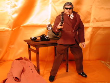| アルフレックス社の「警視K/賀津 勝利」です。 むか〜し、TVでやってた刑事ドラマの主人公ですネ。 道明寺は1回くらい観た事があるよ〜な・・・ 不人気で1クールで打ち切りでした(^^; このドールは主人公を演じた「勝 新太郎」氏を リアルに1/6ドール化した物です。 ・・・って、見りゃわかりますよね(^^; 勝新ってば、人形になっても押し出しが強いです・・・ 主水と並べると顔のデカイこと(笑) アルフレックスさんらしく、服や小物が充実してますねぇ。 ご覧のスーツ&コート、更にセーターまで付いてます。 画像の机とその上の電話、灰皿、ライト、 手に持っているタバコの他に、マルボロのタバコ箱と 手錠、机と対になる椅子が付属です。 机と椅子が木製なのもこだわりを感じます♪ 拳銃は付いてませんので、 下の画像で持っている銃はカルロス君から拝借しました。 御本人さんには悪いのですが、 ウチでは悪役を演じて貰います。 どんな人物かは登場してからのお楽しみって事で・・・ |