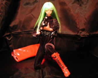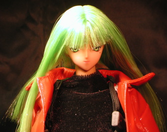| ‘00サマーバージョンのギュンナさんです。 温度によって髪の色が変わる仕様になってます。 残念な事に、ノーマル版と違ってストレートヘアなんですヨ。 ソバージュにして欲しかった所ですねぇ(^^; 元々エレガント・ボディが付いていましたが、可動範囲が狭いので21stCentury Toys製の「ジャックリーン」のボディに換装しました。 何故ボークス製の素体を使用しないかというと、褐色ボディが廃盤中だからデス。(再販大希望!!) 当然そのままでは使えませんので、首をボールジョイント化しました。 ボークスさんの素体とは大幅にプロポーションが違うので、 頭身が上がってエラくカッコ良くなりました♪ これでは、設定の15歳には見えませんネ(^^; 着ている服は「ジャックリーン」の物です。 エナメルのコートがお気に入り♪ ジャンプスーツは・・・何でこんなに毛羽立ってるのでせう? 暖かそうですが・・・(^^; このボディの欠点として、あまりにマッチョなので服を脱がすと萎えるってトコですか・・・(爆) あと、かなり重いデス(;_;) 桃劇では見た目の通り、悪役を演って貰いましょう。 ↑元の設定も悪役だしぃ・・・(笑) |