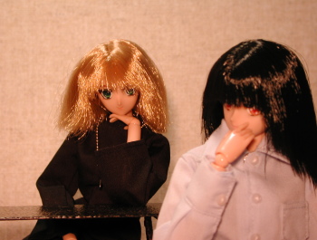 | 初子:でも、ホントにヘンですよ。 すずめ:(かぁ〜っ)な、なんでもないよっ! 初子:あれ?顔が真っ赤・・・ 熱があるんじゃないですか?(ぺた) すずめ:な、なにを・・・!?(がたたっ) 初子:ん〜、よくわかんないな〜? おでこで診た方が早いカモ・・・ すずめ:ひっ!? 初子:どれどれ? すずめ:うわあぁぁ〜!! |