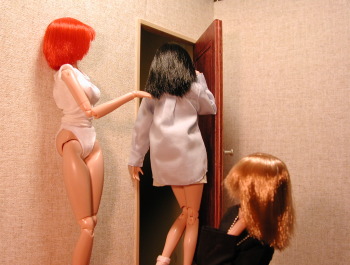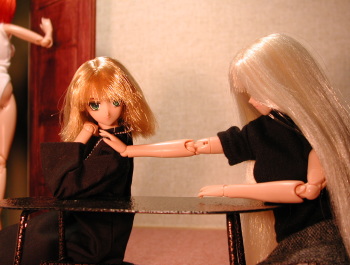 | どんっ!! 初子:きゃん!? 雪枝:すずめ!あんたナニやってんのよ!? すずめ:あ・・・? 初子:あいた〜〜(;_;) すずめ:ご、ごめ・・・ 彩狐:ふっふ〜ん♪ ま、当然ですわ♪ |