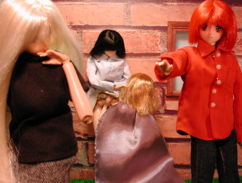| 初子:違いますぅ・・・ 彩狐:それじゃあ、なに?私に恩でも売るつもりなの?なにがなんだかわかんないわよ!!! 雪枝:ふっ!青いわね!! 彩狐:な、なによ? 雪枝:神に定められた運命が解らないなんて、尼僧として失格だわ!! 初子はね、天敵である貴女にすら慈愛を与えることが出来るわ!それが本当の博愛精神ってものよ!!そして、その初子の元に貴女が来た。これは神様が貴女に「もっと視野を広く持て」って言っているって事なのよ!それが貴女の使命なのよぉぉ!!(びしぃっ!) 彩狐:そ、そうだったの・・・(がくっ) 私が間違っていたのね・・・(;_;) |