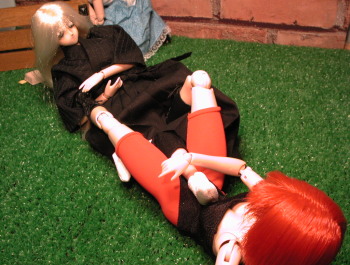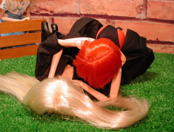 | 雪枝:ふ、ふん!脚四の字なんて効かないわよ!! (みしみし・・・) すずめ:テ、テメエのアキレス腱固め、 ポイントがずれてるぜ! (ぎりぎり・・・) 彩狐:どっちも極ってる様に見えるケド・・・(^^; 雪枝:ほ、ほほほほ・・・・ 顔が引きつってるわね・・・ (みちみち・・・) すずめ:へ、へへへへ・・・・ 脂汗が浮いてるぜぇ・・・ (ぎしぎし・・・) 彩狐:あ、あのぉ・・・そろそろ止めないと・・・(^^; |