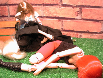 | ぼきっ!!! すずめ:ぐおおっ!? 雪枝:あ゛〜!? 彩狐:だから言ったのに・・・(^^; すずめ:へへへ・・・やるじゃん・・・ 雪枝:アンタもね・・・強くなったわ・・・ すずめ:今日のところは・・・ 雪枝:引き分けね・・・・ すずめ:あははは・・・ 雪枝:うふふふ・・・・ 彩狐:こ、このヒト達・・・すこ〜しアレなんじゃ?? すずめ:雪枝:お前にだけは言われたくないわ!! 彩狐:ぎゃふん☆ |