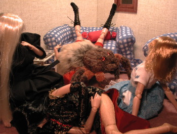 | 雪枝:・・・で、なんで初子がこの姿に? 初音:ちょっと鍛えてやろうかと思ってね。 そしたら、あんまり情けない姿なモノでさ・・・ぷぷっ。 雪枝:はあ・・・(^^; 彩狐:そ、それじゃあ初音さんも蜘蛛になれるの? 初音:見たい? 彩狐:え・・・ちょっとだけ・・・(^^; 初音:ん〜・・・この部屋じゃ狭いな・・・ 彩狐:や、やっぱ、いいデス・・・(;_;) すずめ:初子ぇ、お前手触り良いな♪(なでなで) 特にお腹の下辺りがなんとも・・・(なでなでなで・・・) 初子:ぴゅうぅ・・・(ぷるぷる・・・) |