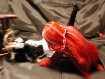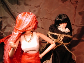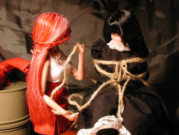 | 苺:馬鹿にするんじゃないよ!!(ーーメ 初子:あん・・・そんなに乱暴にしたら余計に解らなくなっちゃいますヨ? 苺:うるさい!大体何で私がオマエに縛り方を教わらなけりゃならないんだよ!?そもそも何だって縛り方なんて知っているんだい!?ガキのクセに! 初子:だってぇ〜♪・・・ユキさんがよくこうやって三角のお馬さんに乗っけて遊んでくれるの♪♪ 苺:・・・ちょっと待て(^^; 初子:はい? 苺:オマエはいつもこういう事ばっかりされてるのかい? 初子:えへへ〜♪・・・まぁ・・・ 苺:・・・・(もしかして物凄く可哀想な娘なのか?) 初子:あの・・・何か? 苺:ちっ!洒落にならないか・・・(しゅるる・・・) |