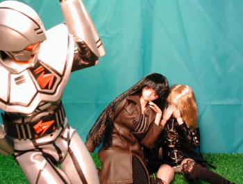 | 彩狐:武装解除命令送信!・・・OK。 初音さん、どおぞ♪(ジィィ・・・) 初音:くすくす・・・このコ入れちゃえ♪(かさかさ・・・) 彩狐:あ・・・カワイソ(^^; 初音:あら・・・コイツに同情してるの? 彩狐:い〜え♪そのクモに・・・(^^ 初音:・・・良い性格ね、彩狐(^^; 彩狐:わ〜い♪誉められた♪♪ |