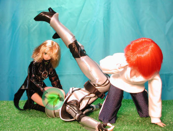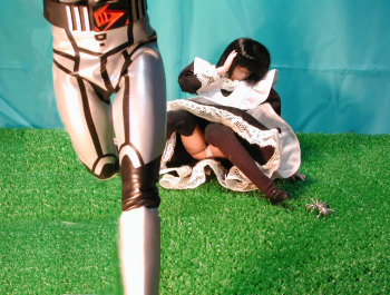 | クリス:う・・・ん・・・はっ!?あ!・・・やだ!! 中に何かいるぅ〜(><) 初音:くすすっ♪ク・モ♪♪ クリス:いやあ!?取って取ってぇ〜!!(><) 初音:暴れると噛まれるわ。 クリス:ひっ!? 初音:そうするとね、噛まれた所から身体が腐るの♪ クリス:ひぃぃぃ〜!!(><) 彩狐:ホ、ホントですか?(ひそひそ・・・) 初音:大嘘♪毒なんか無いわ(ひそひそ・・・) かぷっ クリス:か、噛まれた・・・(;_;) |