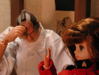 | 芥:おい・・・ 美影:おや、代官様? 御声はすれど姿は見えず・・・ ほんに貴方は屁の様な・・・(ーーメ 代官様〜どこで御座いますか〜!?(ぐりぐり) 芥:おいこら!!(ーーメ 美影:代官様?何処に?何処に〜〜〜!?(ぐりゅぐりゅ) 芥:あだだだだだ!(T_T) 万理:本名を連呼して怒らせるから・・・(^^; 香蘭:アホやな・・・(^^; 美影:代官様〜〜〜!?(ぐりぐりげしげし!!) 芥:ええ加減にせい!!!(ーーメ |