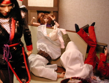 | 美影:はっ!ではさっそく・・・美里!! 美里:は〜い♪ がばぁ!! 芥:どわぁ〜!? 万理:きゃ〜!? 香蘭:ひえ〜!? どさどさどさ!! 美影:任務だ!ついて参れ!! 美里:りょ〜かい♪ 美影:では行ってまいりますぞ!!(しゅた!) 美里:ばいば〜い♪(しゅたた!) 芥:お、お前等・・・次からはふつ〜に出て来い・・・(;_;) |