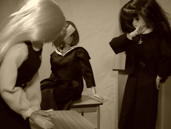 万理:その後・・・彼は・・・うぅっ・・・(TT) 香蘭:万理はん・・・ 美里:万理さん、元気出して下さい! アイツ等は必ず私達が!! 香蘭:そやで!ウチも応援するさかいに!! 美影:うむ! 皆で協力して万理殿の恨みを晴らそうではないか!! 万理:み、皆さん・・・ありがとうございます!! 芥:くうぅ〜!友情とは何と美しい・・・ 天晴れである!! |