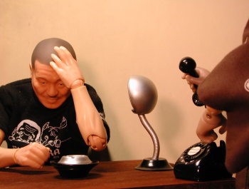 | 主水:げ。 梶原:何だよ、それは? 主水:うるせえよ!ちょっと待ってろ。(じ〜ころ・・・じ〜) もしもし?紫乃ちゃんかい?あ〜、そうそう中村だが・・・ アレ居るか?アレ。おう、悪いねえ・・・(こそこそ) 梶原:何こそこそしてんだよ?(どかっ) 主水:黙ってろ!・・・あ、悪ぃな、こっちの事だ・・・ おう、初音か?オメエの所に面接予定の奴な・・・ 野暮用でウチに居るんだよ。 これから面接受けてくれるか?・・・済まねえな。 昔馴染みなんでよ、よろしく頼まあ。・・・じゃあな。(ちん) |