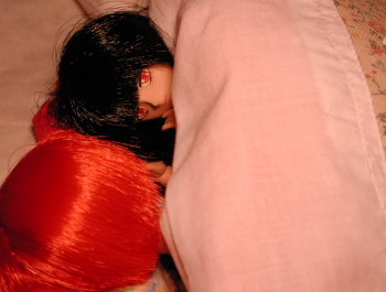 | すずめ:なあ・・・ 初子:はい? すずめ:初子の友達な・・・初子の事が嫌いになったんじゃ無いと思うよ?ちょっと驚いただけでさ・・・ 初子:優しいんですね・・・ すずめ:あ・・・いや・・・まあ・・・もっとこっちに来てくれる? 初子:・・・?(もそもそ・・・) すずめ:一度しか言わないけどさ・・・ 初子:はい・・・ すずめ:初子は・・・初子の事は、あたしが守るから・・・ 初子:すずめさん・・・ すずめ:初子・・・ 初子:ん・・・あ・・・そんな・・・いきなり・・・ すずめ:ま、まだ何にもしてないよ!(^^; |