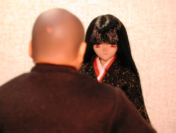 | 紫乃:梶原様が御見えです。 梶原:遅くなっちまって・・・どうもすみません。 初音:気にしてませんわ・・・どうぞ、こちらへ。 紫乃ちゃん、ありがとう♪今日は休んでもいいわ。 紫乃:はい・・・失礼します(ぺこ) 梶原:(随分若い女将だね・・・) 初音:?・・・何か? 梶原:いや別に・・・失礼します。 |