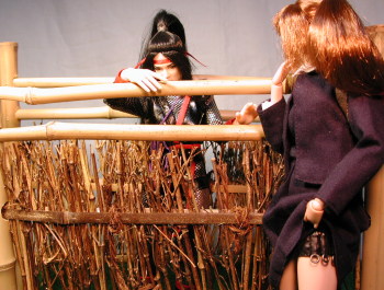 沙津姫:(ばっ!)無礼者が!! ・・・あれ?誰も居ない・・・ ??:ここぢゃ、ここ。 沙津姫:ん?・・・あ・・・ちっこい・・・(^^; ??:御主の方が無礼ぢゃな(ーーメ ・・・何かワシに用かの? 沙津姫:え?貴女が此処の? ??:ん。 沙津姫:し、失礼しました! 私、犬神の里より修行でこの地に参りました、 犬神 沙津姫と申します。 ??:ふむ。ワシはナコルル。 近しい者は「こなこ」と呼ぶがの。 |