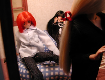 | がらっ 万理:それは違います! 芥:万理くん・・・どわ!? 香蘭:ひえぇ!?か、髪、切ったんか? 万理:通り魔の息が掛かって気持ちが悪くて・・・(;_;) 香蘭:万理はん・・・(;_;) 万理:あ・・・気にしないで下さい(^^; ところでメールの件ですが、彼女達は力押しのタイプです。 そんな回りくどい方法は使いませんわ。 香蘭:ウチもそう思うで(^^ 芥:う〜む・・・言われてみれば・・・ 万理:出撃許可を出しますか?(^^ 芥:う〜〜〜〜〜ん・・・・・・ |