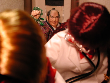 | こなこ:朝早うから呼び出してすまんの。 主水:まだ夜が明けてねえって!(^^; まったく、やっと帰れると思ったのによ・・・ なこ:すみません、「仕事」の依頼なんです。 主水:「仕事」? 随分と久し振りだな? ナコ:しばらく平和だったからね・・・ 腕は鈍ってない?(^^ 主水:馬鹿にしてんのかい(^^; なこ:くすくす♪ こなこ:さて・・・今回の「仕事」ぢゃが・・・ |