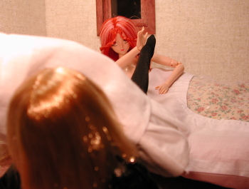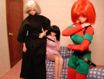 | すずめ:(きゅっ)ん〜・・・こんなもんかな〜・・・ 雪枝:アンタ、それで行くの? すずめ:うん、初子が作ってくれたから・・・ 雪枝:いつの間に・・・?(^^; 初子:えへへ〜・・・わたしと母さまの糸で作りました♪ 衝撃を受けると硬化するように織りましたですぅ♪ 雪枝:ふ〜ん・・・いいわねぇ、ラブラブで!(ーーメ 初子:あ・・・ユキさんの道着も強化してありますよ(^^ 雪枝:あら・・・どうりで着心地が良いと思ったわ(^^ すずめ:ユキはいつもの女王様じゃ無いのか? 雪枝:んふ♪遊ぶ気はまったく無いのよ♪♪ 初子と彩狐を泣かした落とし前は付けてやるわ!(ーーメ すずめ:うっしゃ!そろそろ行くか!! |
