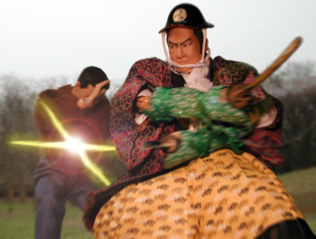 芥:おおおおおりゃあぁぁぁぁ!!!! ダイカーン・クラッシュ!!! ズバァ〜〜〜ン!!! 蜘蛛男:ぬがぁっ!? 芥:うはは!まだまだ若い者には負けんわい! ぺきっ・・・ 芥:「ぺき」?・・・あ゛〜〜〜っ!?(><) |