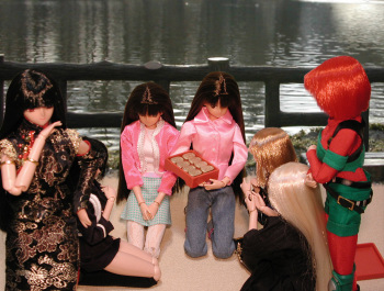 ナコ:じゃ〜ん♪この通りバッチリよ! すずめ:おお!山吹色の菓子!! 彩狐:すご〜い!キレ〜♪ 雪枝:今度は本物でしょうね?(^^; 初音:もちろん♪ 初子:どうしたんですか?これ・・・ 初音:今回の仕事料よ♪ 二人に集金を頼んだの(^^ 初子:そうですか・・・御苦労様ですぅ♪(ぺこ) なこ:まあ、集金って言えば聞こえは良いですよね(^^; 初音:おほほ♪細かい事は気にしちゃダメよ(^^ |