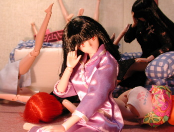 | 初子:え〜とね・・・ 彩狐:うんうん・・・ 初子:わたしね・・・(もじもじ・・) すずめ:100歳とか言い出すなよ〜(^^; 初子:今年でね・・・(ふるふる・・・) 雪枝:45歳とかの方がリアルな分だけ嫌だわ・・・(^^; 初子:産まれて9年目になりますぅ〜♪ ・・・・・・・・・・・・・・・ 一同:なんですとぉ〜〜〜!? ちゅど〜ん!!! こなこ:ワシまで巻き込むな〜・・・(;_;) |