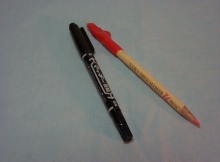 ペン。 顔の下書きに使うのは、手芸用のチャコペンか鉛筆がいいです。 道明寺は、Hの鉛筆を使ってます。 |