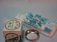 パレットと塗料皿。 塗料を溶いたり、混ぜたりするのに使います。 模型店で売ってます。 使い終わったら洗わないと、塗料が取れなくなります。 それで何枚捨てたことか・・・(笑) |