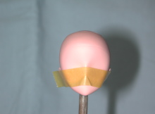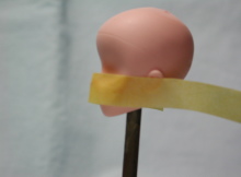 | 次に、素体ヘッドの耳にテープを貼ります。 前項で確認した位置と同じところに貼ってください。 |