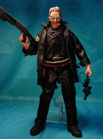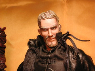 | タカラ「エリート・フォースシリーズ」のターミネーター・カルロスです。 テロリストのドール・・・いいのか!?(笑) 悪役顔なんですが、ナゼか目元が涼しげ。 なんとなく優しい顔にも見えちゃいますね。 上から下まで黒で統一しているトコロガお洒落(^^; コートとズボンはフェイクレザー製です。 装備は色々付いてます。 ショットガンに拳銃、サングラスに葉巻。 ガンベルトに防弾ベスト・・・・etc. (画像で持っているショットガンとゴーグルは付いてません) 銃器類が好きなヒトは思わずニヤケそうなセットですね。 兵隊さんとか警察官では満足出来ない方にオススメのドールです♪ 桃劇での扱いは「オカマさん」ですが、そんな設定は公式には無いので安心して下さい(爆) |