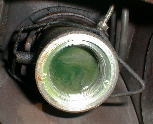 LHM交換がしてあるにもかかわらず、この部分へは圧が掛かるだけでLHMの循環がありません。その為、アルミ製シリンダーの摩耗した粉が写真の様にLHMに貯まり浮遊していました。