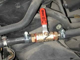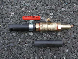 ホームセンターで温水配管用のボールバルブとそれに合うホースニップル(タケノコジョイント)・ホースバンドを揃えれば簡単です。