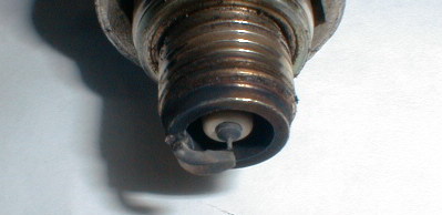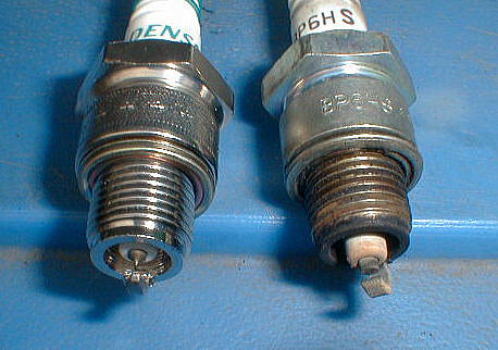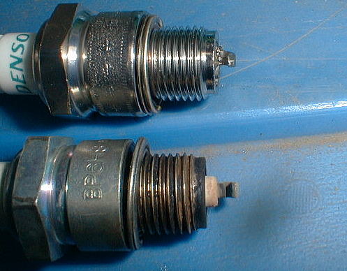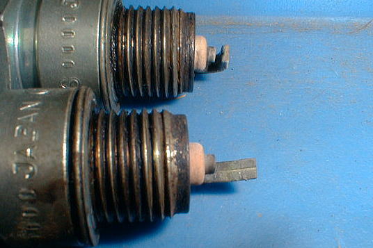 この改造プラグは写真の様に、標準のNGK製BP6HSの接地電極を真直ぐに起し、DIYで売っているピラニア鋸と言う薄刃の鋸で接地電極に溝を1mm程切って、U字電極タイプにした物です。