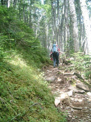 週末の夜、バタバタと山の支度をして自宅をでる。 翌朝、寝不足と車酔による体調不良のまま薬師岳に向け登山開始。 全身がだるく重い。 |