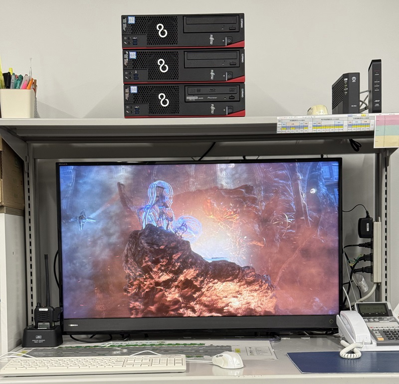 | ゲーミングモニター2台とゲーミングPCをICEBERG家に納入したので50インチTVをモニター代わりです💦 ※HDMI切り替えで4台のPCと接続可能です。 |