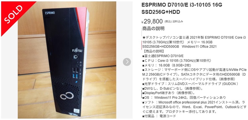 メルカリから入手した富士通製ESPRIMOパソコン使い道