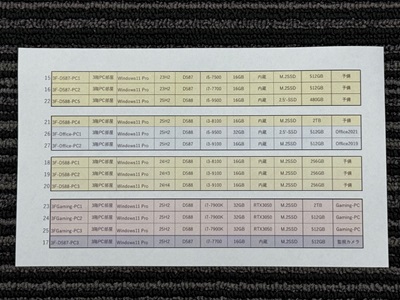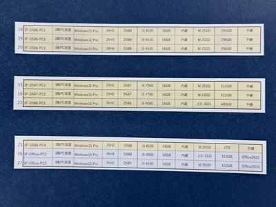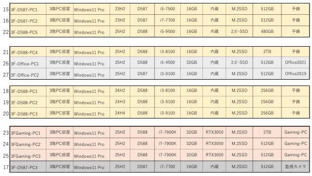 | ゲーミング用、オフィス用、監視カメラ用、その他に仕分けして整備します。 | |