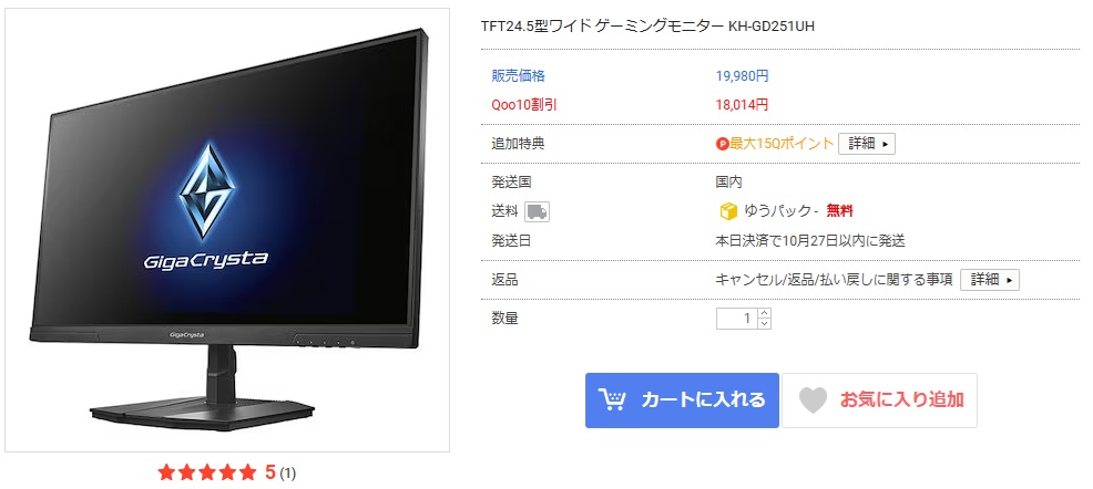 複数台予定なので2万円を目安にGIGABYT製モニターと迷ったが