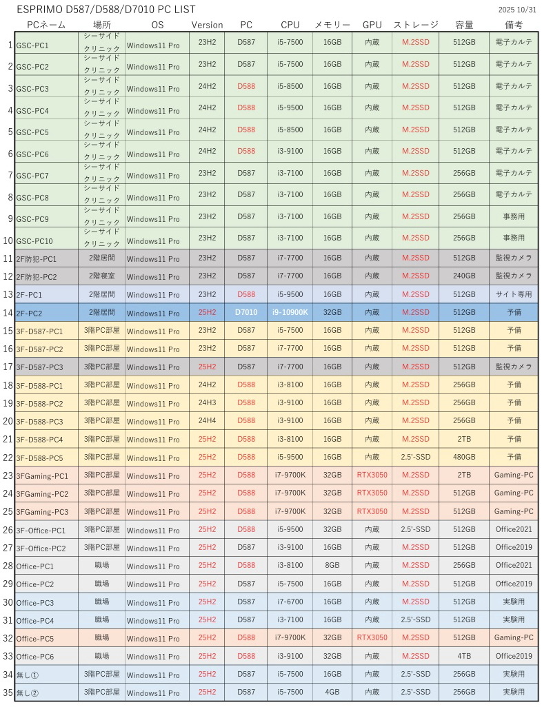 2025年 10月 31日 ESPRIMO D587/D588/D7010 PC LIST💦
