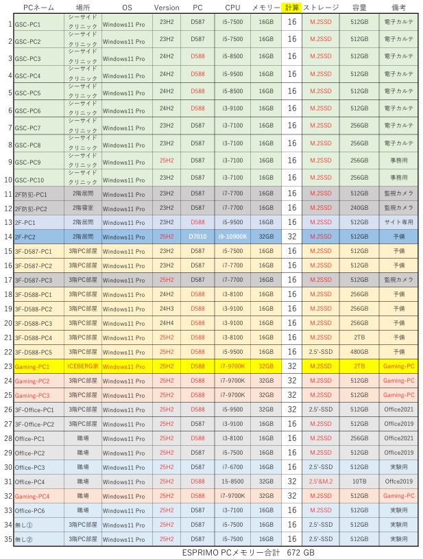 更にバックアップ体制で25台の予備機になるESPRIMO PCを確保です。
