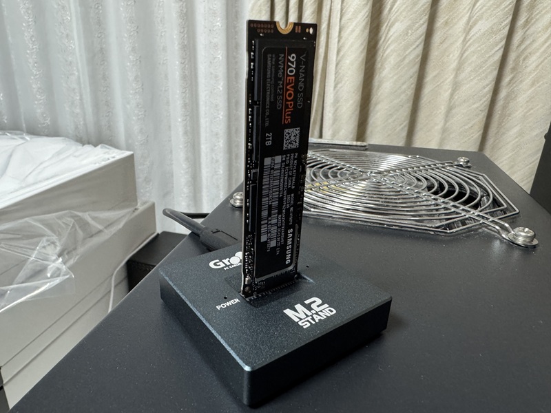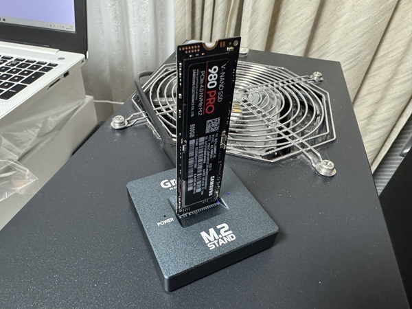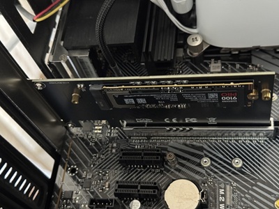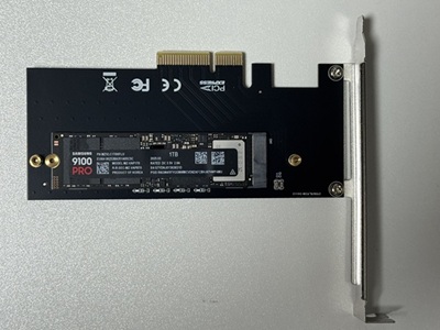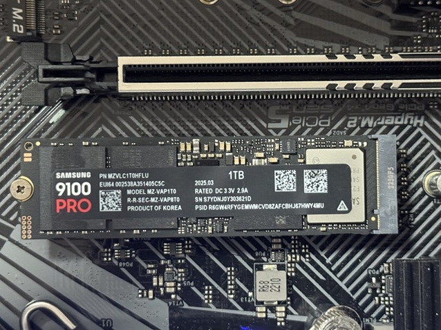 | SAMSUNGのハイエンド9100PRO 1GBを試します。 | PCIe5.0のGPUスロットに挿してハイスコア目指します。 |