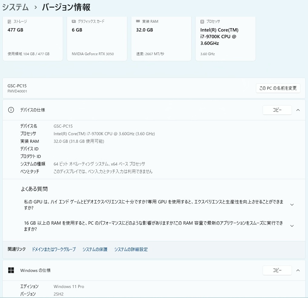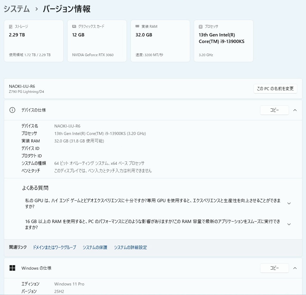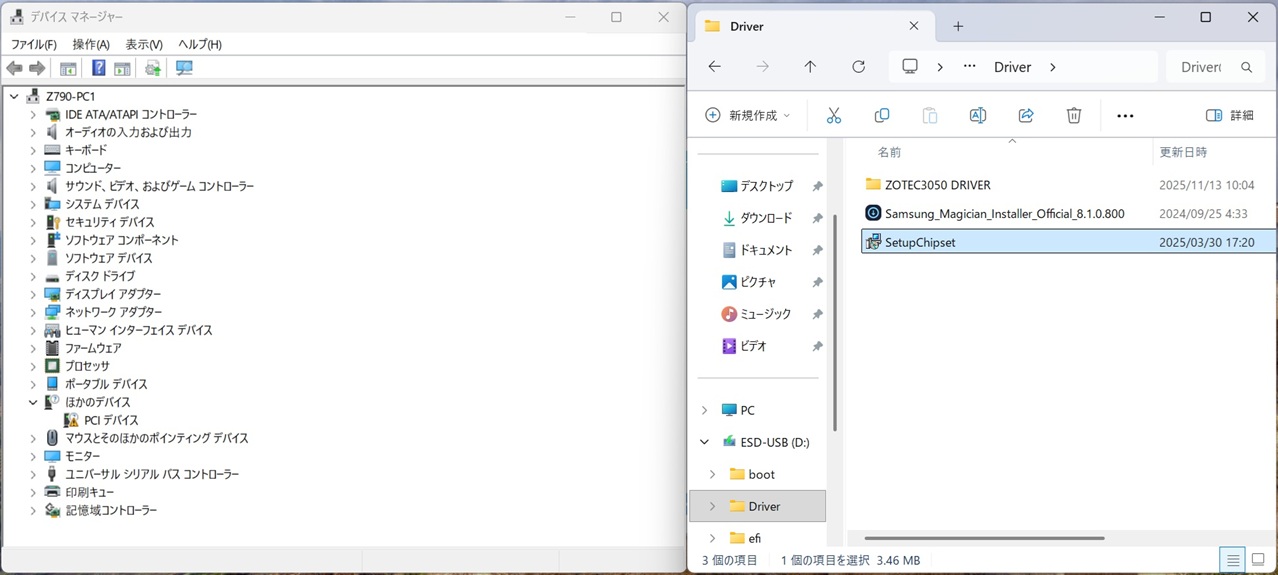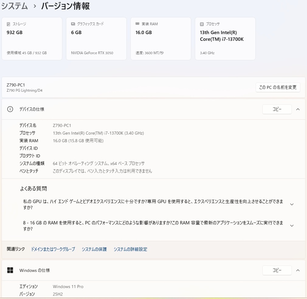 | Windows11Pro Version 25H2にアップデートを行いました。 | ※順調に行く予定でしたが... ※起動不可で、インストールUSBで再現性無し起動です。 |