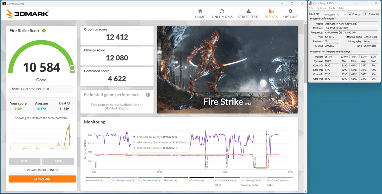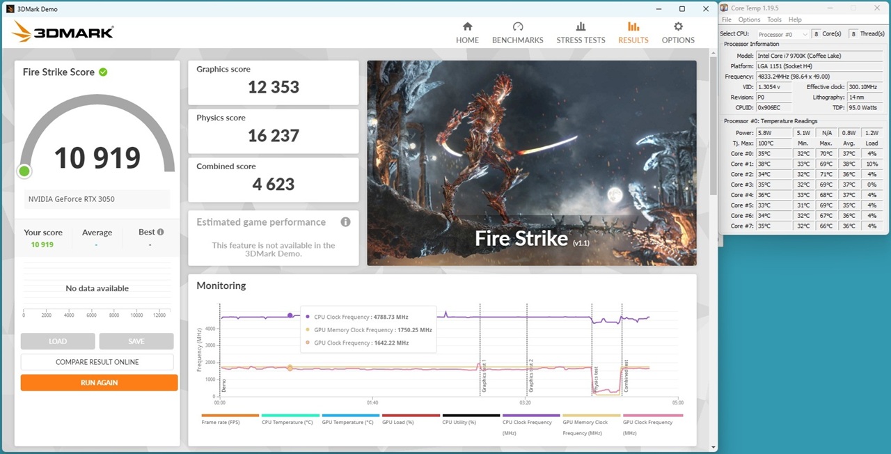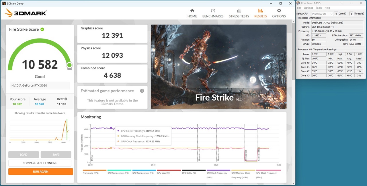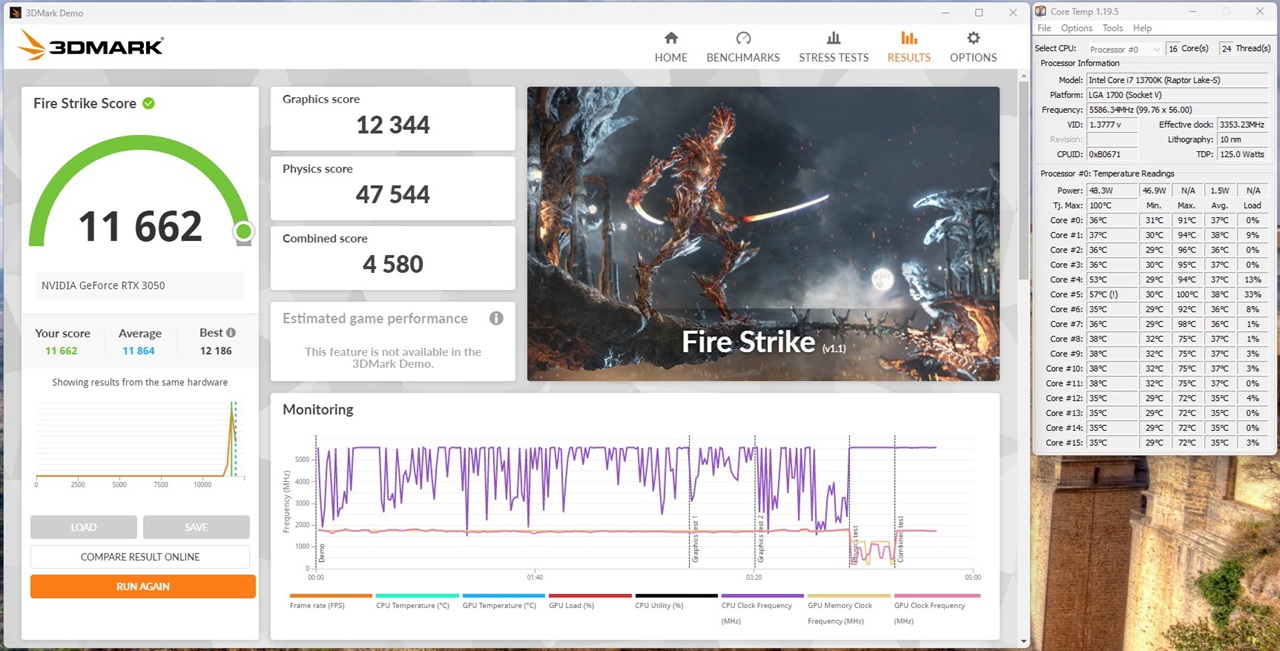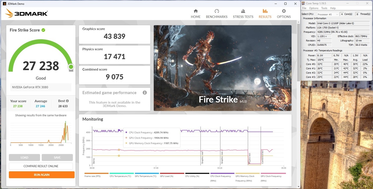 i3-12100F + RTX3080 FIRE-STRIKEスコア