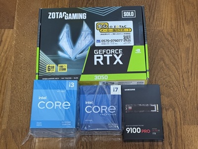 | スリムPCと同じRTX3050 6GBで試します。 | M.2SSDとグラフィックボードを装着しました。 |