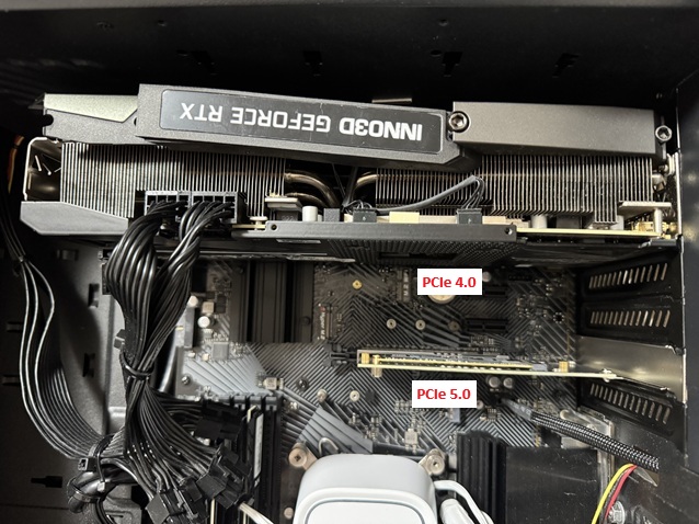 PCIe 4.0からPCIe 5.0に挿し換えてスコアを比較します。