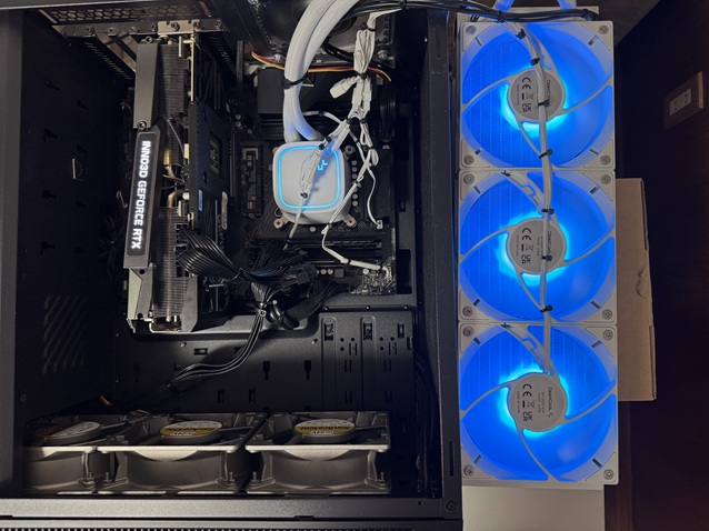 | SAMSUNG 9100PROを本来の場所に装着です。 (PCIe 4.0) | 同じくグラフィックボードもっ本来の場所に装着しました。 (PCIe 5.0) |