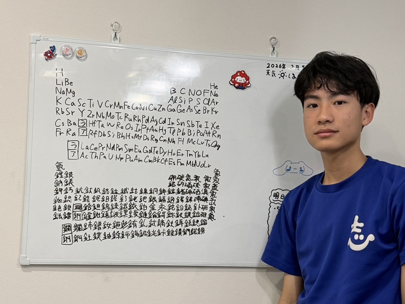 ホワイトボードに元素記号とその中国語です。