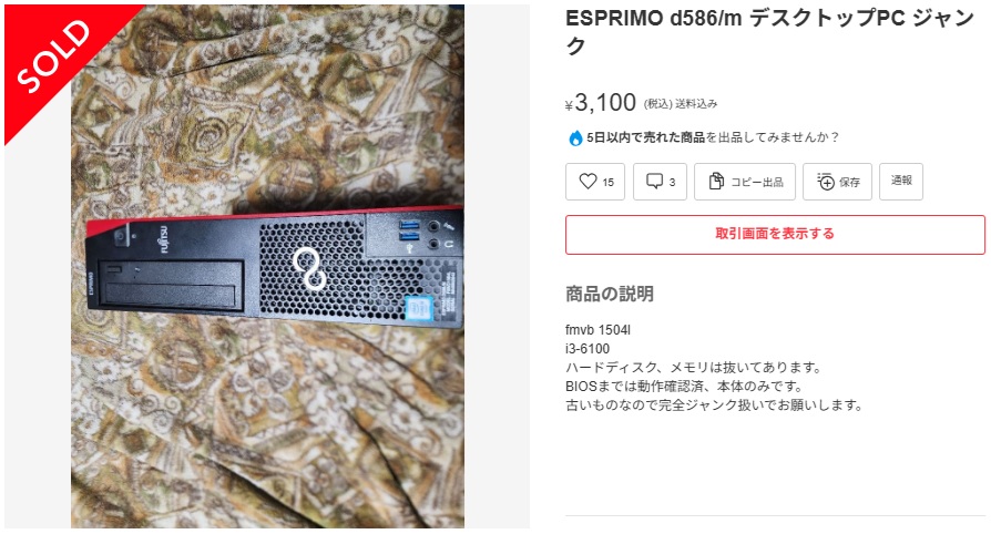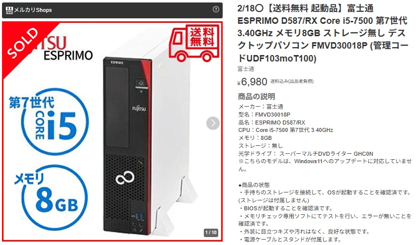 前回の出物 ESPRIMO D586 intel 第6世代CPU対応 ¥3,100円