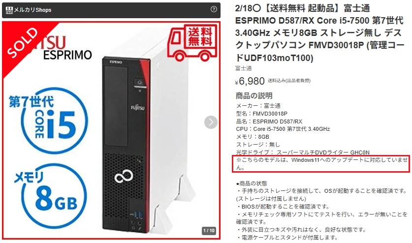 ※「商品説明」ではWindows11へのアッデート不対応と記載だが...