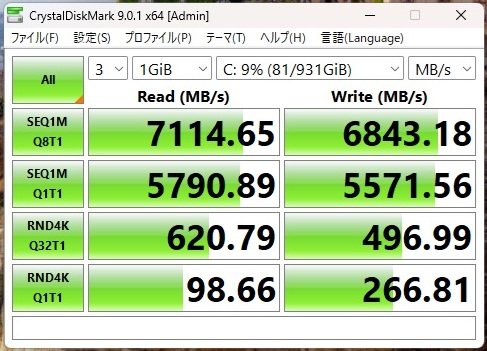 ※PCIe4.0接続なのでスコアは若干落ちています。