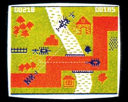 | タンクは一人で2台ずつ、計4台が画面を縦横に移動しながら互いに撃ち合うスリリングなゲーム。 | 画面の中には、川、柵、家などの障害物が配置され、実戦さながらのゲームが楽しめます。 |